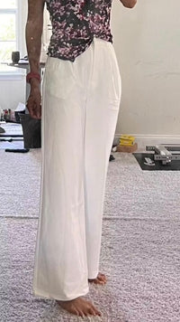 Crafted in a crisp, flowing fabric, they drape beautifully with every step, elongating the silhouette while keeping a minimalist charm. Perfect for mornings at the office, evenings in the city, or weekend strolls, they blend versatility with undeniable class.